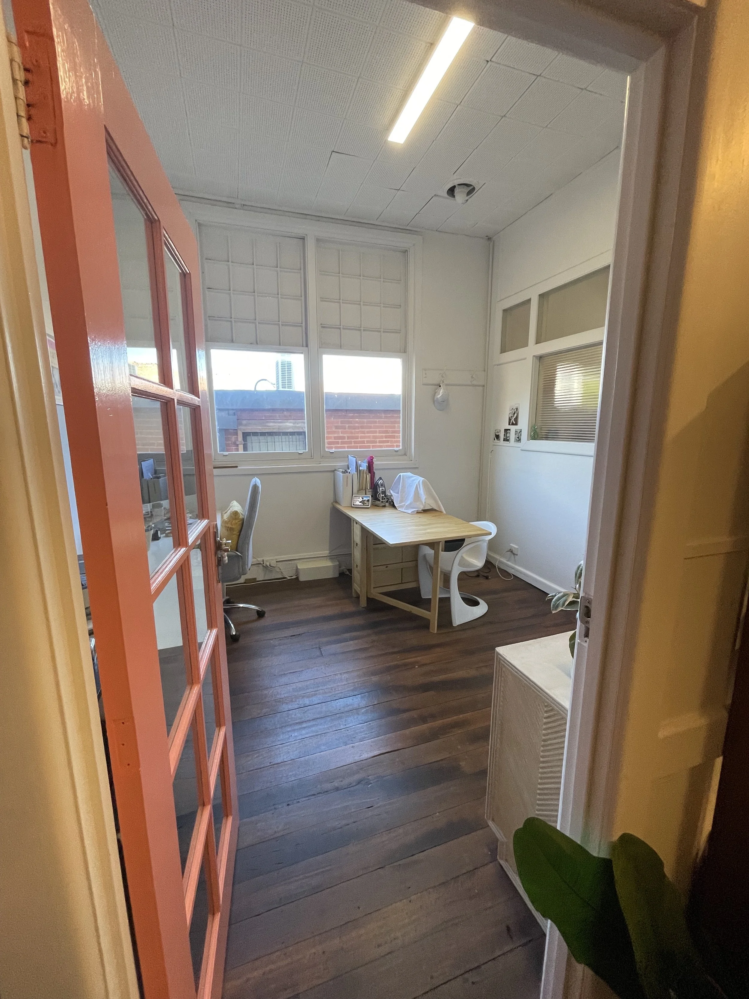 One of our bright studio spaces, The Office 2 is available for short term or long term lease. Situated in the classic Mechanics Institute Building in Footscray on level 1. A stone's throw from Footscray station, there is plenty of parking available also. We are a fashion design business and already share with a graphic designer and music teacher, any business or creative welcome to share this wonderful bright space.
