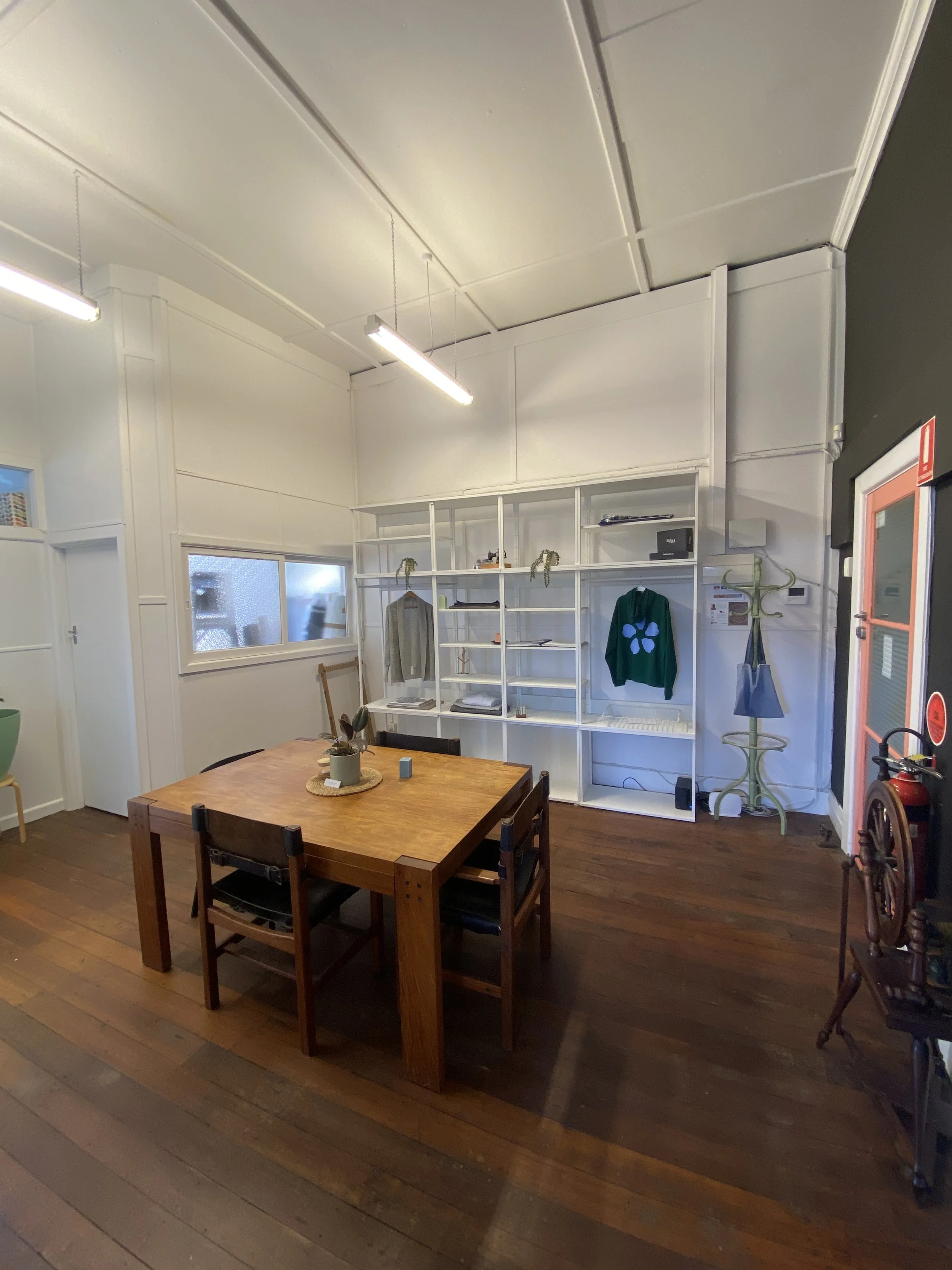 This room is Ideal for your next workshop, sales meet or group catch up. There are plenty of shelves to display product and the space can be arranged as required for your next event. There is a kitchenette (no stove, small sink with cold water and a bar fridge) just adjacent to the workshop area and shared toilets down the hall.